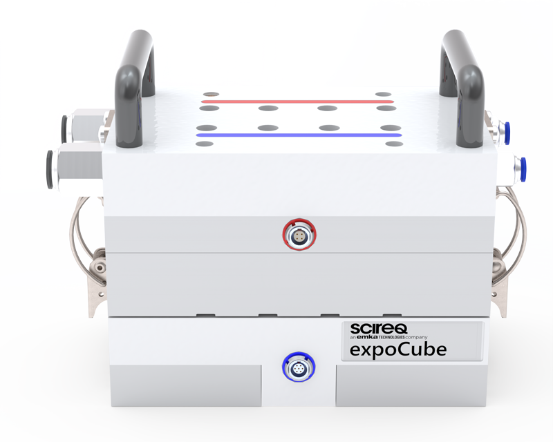 The expoCube is a novel Air Liquid Interface (ALI)/Transwell in vitro exposure system which permits highly reliable and effective deposition of aerosols onto cells and tissues. This exposure takes advantage of Thermophoresis, which guides small particles and gas onto the target tissue through a temperature gradient and increases the deposition rate from 2% to ~40%.